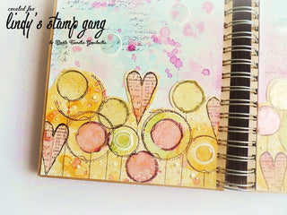 The pages have 2 layers – I created separately the sky and the flowers. The meadow with colorful flowers is created with some stamps, sprays and embossing powders.