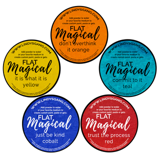 Who doesn't need a perfect set of primary colors? Natalie May is at it again with a super vibrant set that will be a staple in your studio that she named after her words of encouragement she uses in all her classes! These beauties are flats, so they are super bright, rich, and easily mixed with each other or the magicals you have at hand! Add glitzy magicals for some shimmer, or leave them as glorious flats! Either way, you won't be disappointed in these beauties!